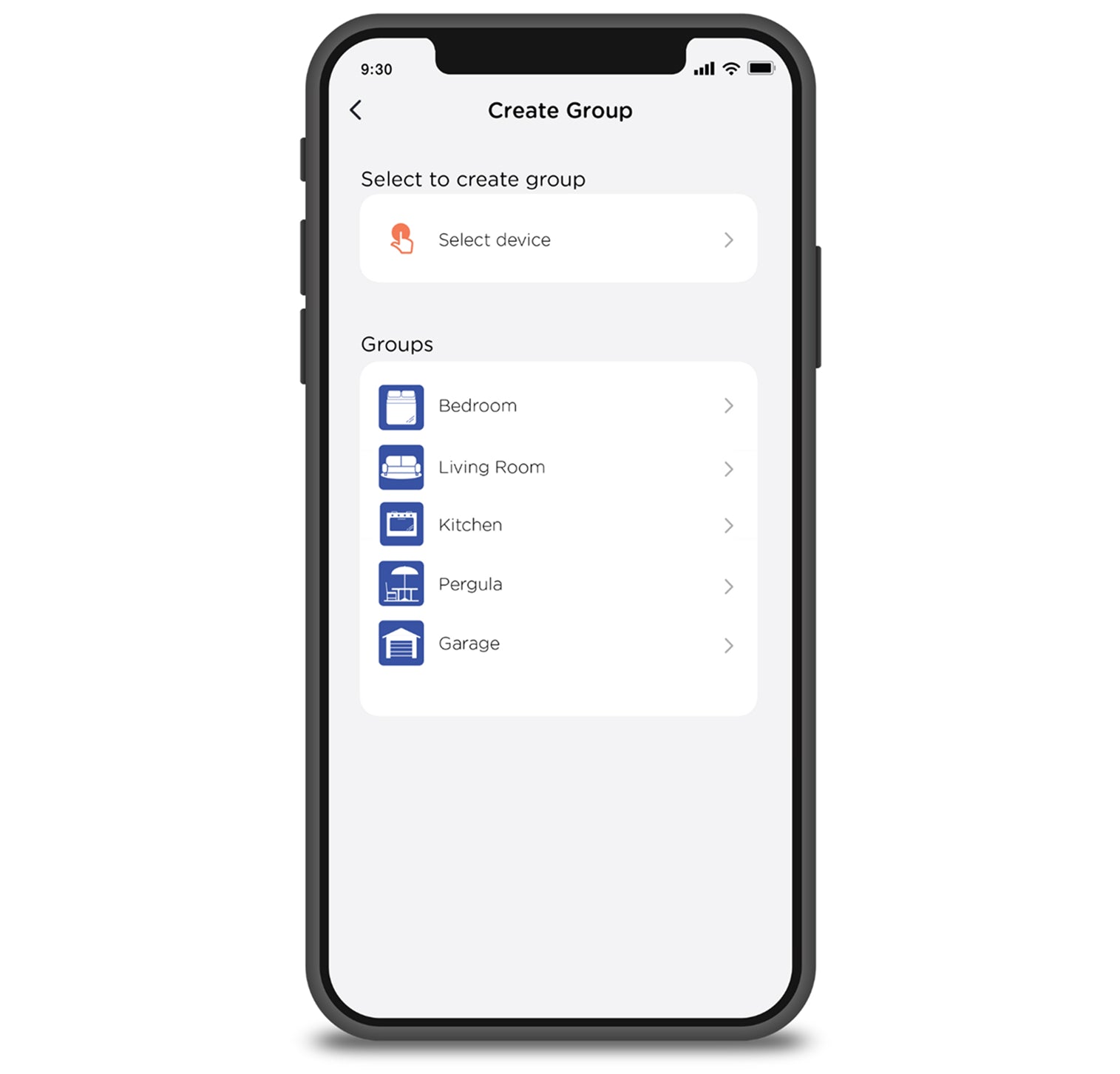 Several devices can follow the same commands through the groups feature.Groups allow devices to be sorted to specific areas, like patios, basements or bedrooms, giving you the ability to control entire spaces at once.
