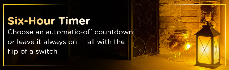With two different modes to choose from, use the ON/OFF/TIMER switch to activate the automatic six-hour countdown or choose constant illumination. Powered by 3 AA batteries (not included), this lantern is created to last, tested for safety and designed to provide lighting for life. Set the lantern on any flat surface or hang it using the built-in ring. Warm rustic lighting, firelit ambience — the Enbrighten Basics Candle Flicker LED Lantern.