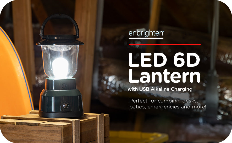 Illuminate any journey with the Enbrighten Dimmable Lantern with USB Charging. Whether camping, traveling or to have on hand in emergencies, the lantern is ideal for activities that require extra visibility. The 800-lumen LED keeps your path well-lit during a hiking excursion or at your campsite. Built for outdoor use, the lantern has a rugged, impact-resistant construction with a locking carabiner handle for easy hanging. In case of emergency, the lantern comes equipped with a standard USB port to charge your mobile device at 1 Amp using the lantern’s battery power.