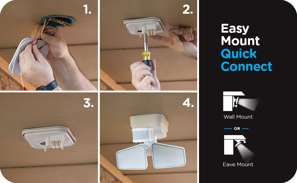 Installation is simple – the motion‑sensing LED light can be easily wired to any non-dimmable wall switch with its easy mount, quick connect system. The multi-position, flexible heads can be maneuvered to aim the light directly at the desired outdoor area. Take your outdoor lighting to the next level with the Enbrighten Outdoor 2-Head Motion-Sensing LED Security Light, White.