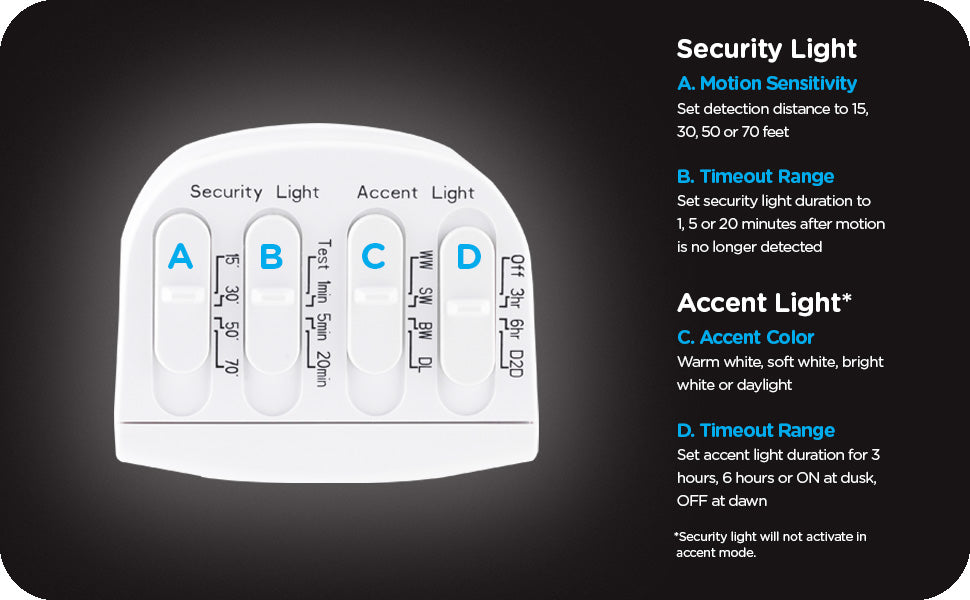 The motion-sensing LED light is weather resistant and can be used as both an accent light and security light, with a number of customizable settings to best suit your household needs. You can select a lighting schedule and detection range for your light, as well as a custom white temperature to match your existing outdoor lights. Choose from: warm white, soft white, bright white and daylight. Additionally, the light includes a dusk-to-dawn feature that helps keep energy costs down by turning the light on at dusk and off at dawn.
