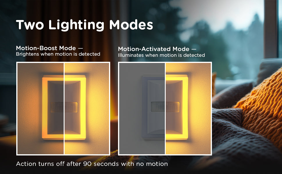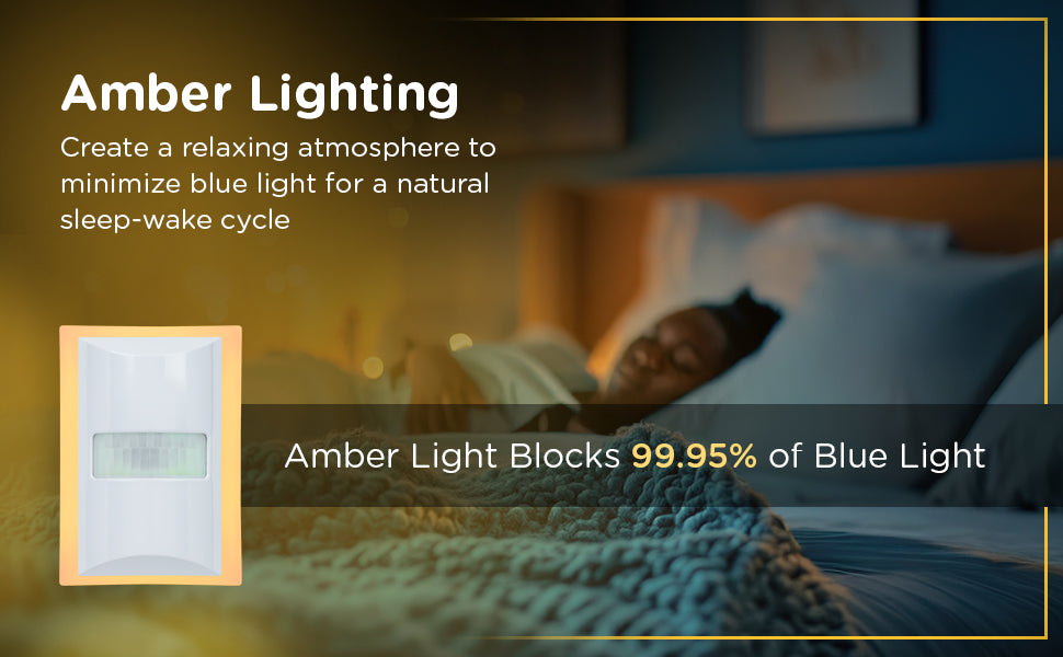 Settle in with the sleep-friendly glow of the Enbrighten LED SleepLight featuring Motion-Select technology. This warm night light for kids and adults emits a soft amber light that creates a calming ambiance for evening routines, minimizing disruptive blue light that can affect your internal clock. Eliminating blue light helps foster a relaxing atmosphere, making this dimmable night light ideal as wall décor, warm lighting for bedroom spaces, a soothing night light for baby nursery setups, stylish kids’ bathroom décor, or a comforting nightlight for kids’ room lighting. Motion-Select technology offers two lighting modes. Motion-boost mode combines dust-to-dawn automation with motion sensing. In low light, the wall light turns on as an amber guide light, brightens when motion is detected up to 20ft., then dims after 90 seconds of inactivity. Motion-activated mode illuminates only when motion is detected in low light within 20ft., then turns off after 90 seconds of inactivity. This sleek, white night light blends seamlessly into any room and covers both outlets. Whether used as a night light for kids, in hallways or in bathrooms, it’s a stylish and functional addition to your home. Ease into restful slumber with the Enbrighten LED SleepLite.