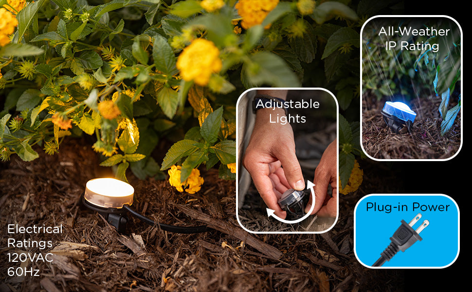 Eternity Lights are created to last. Weatherproof and IP67 rated for the elements, it's the perfect addition to your garden, lawn, flower bed, patio and more. Using the sturdy snap-on stake, the pucks install securely in moments. UV-resistant cable ensures worry-free operation with a discreet appearance. The subtle LED pucks are virtually invisible when installed and envelop your space in a cascade of color when on. For added flexibility, connect multiple strands or extensions up to 150ft. For your lifestyle, for forever - Enbrighten VIBE Eternity Landscape Lights.